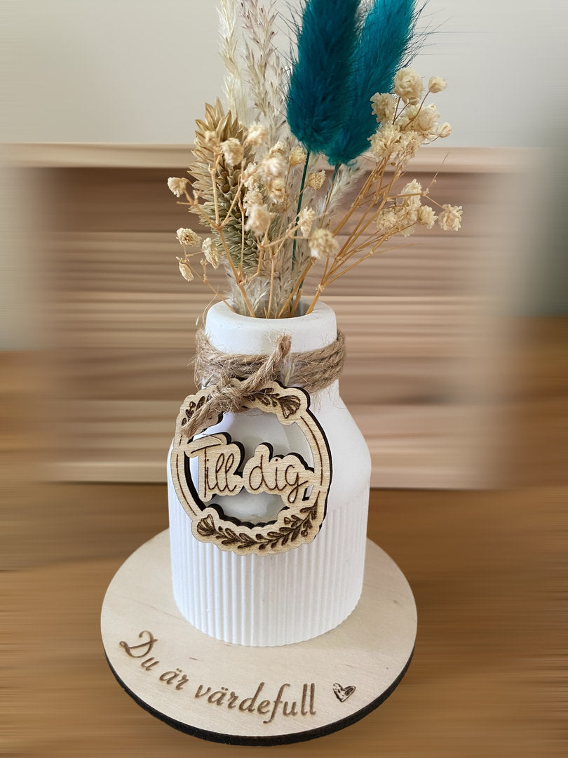 Dekovase auf graviertem Holzbrett „Du bist wertvoll“