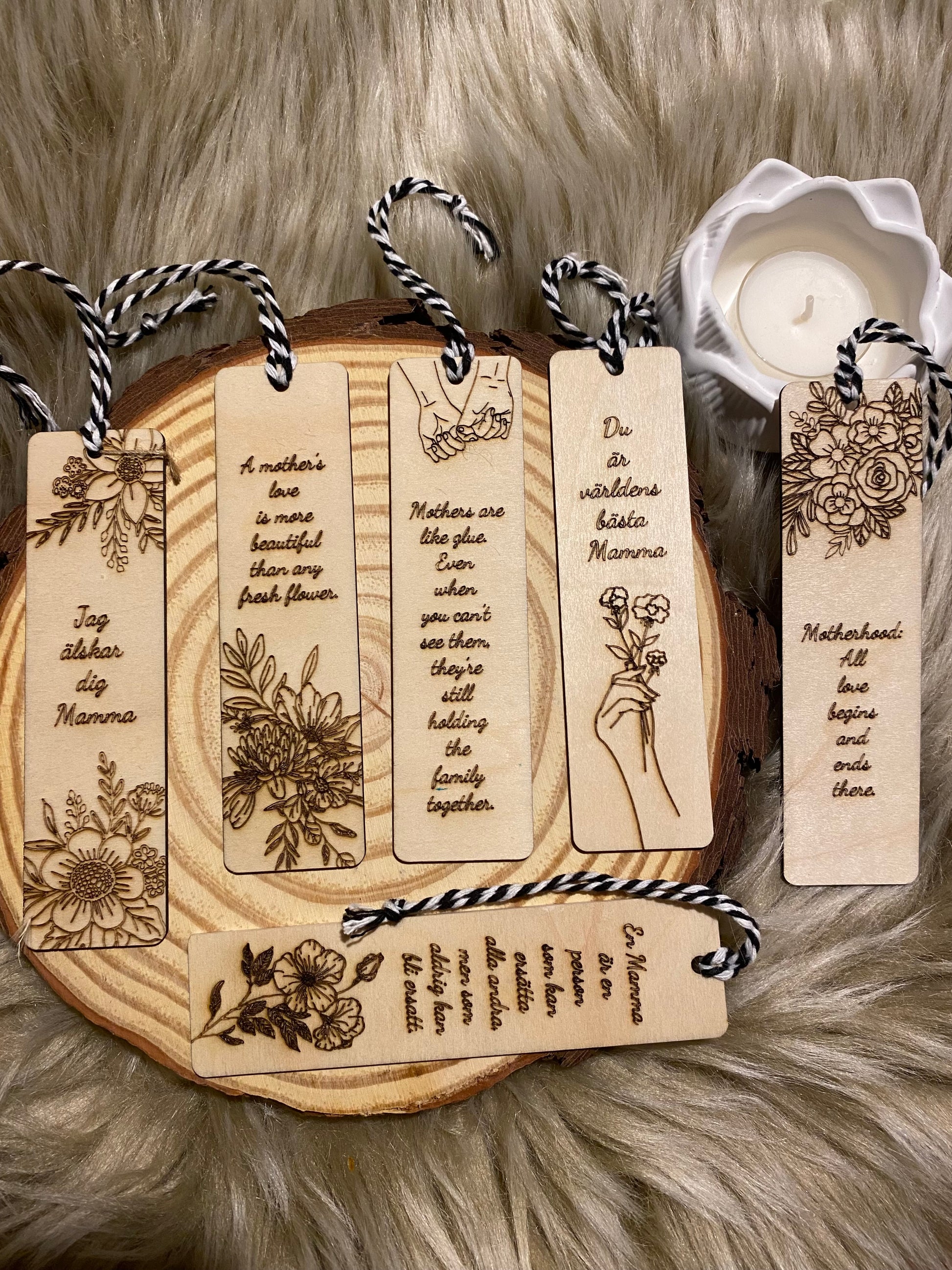 Holzlesezeichen mit liebevollen Botschaften für Mütter