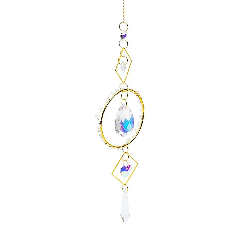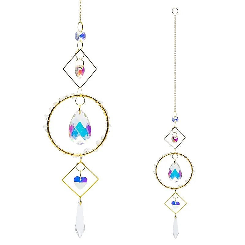 Schaffen Sie Harmonie, Farbe und positive Energie in Ihrem Zuhause mit diesem wunderschönen Solarkollektor mit funkelnden Kristallherzen . Perfekt zum Aufhängen an einem sonnigen Fenster, zwischen Pflanzen oder im Kinderzimmer – wo es das Sonnenlicht in ein magisches Spiel aus Regenbogenreflexen verwandelt, das Ihre Umgebung erhellt.