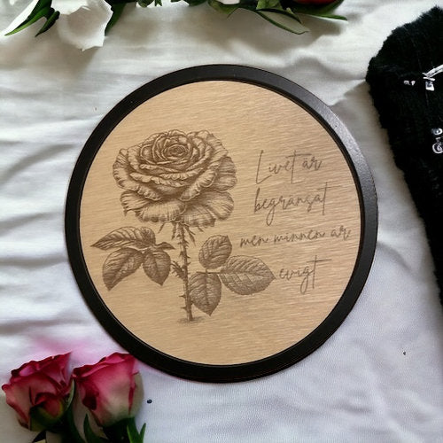 We want the sign to reflect your feelings and memories. That's why you can customize the text to your wishes. Write a comment at the end of your order or contact us directly, and we will create a memorial sign that feels right for you.