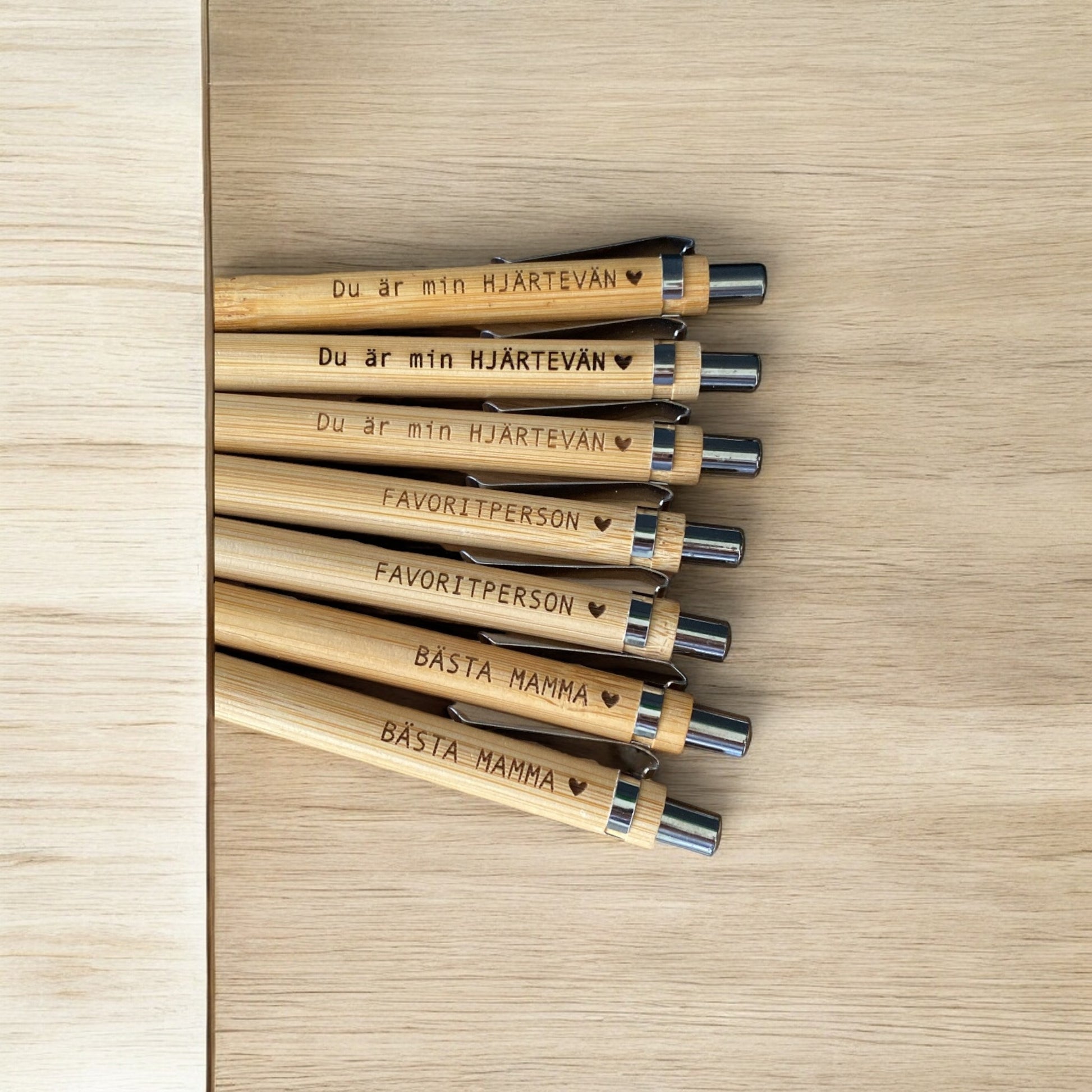 Välj vår bambupennorna med gravyr för en kombination av stil, funktion och personligt uttryck!