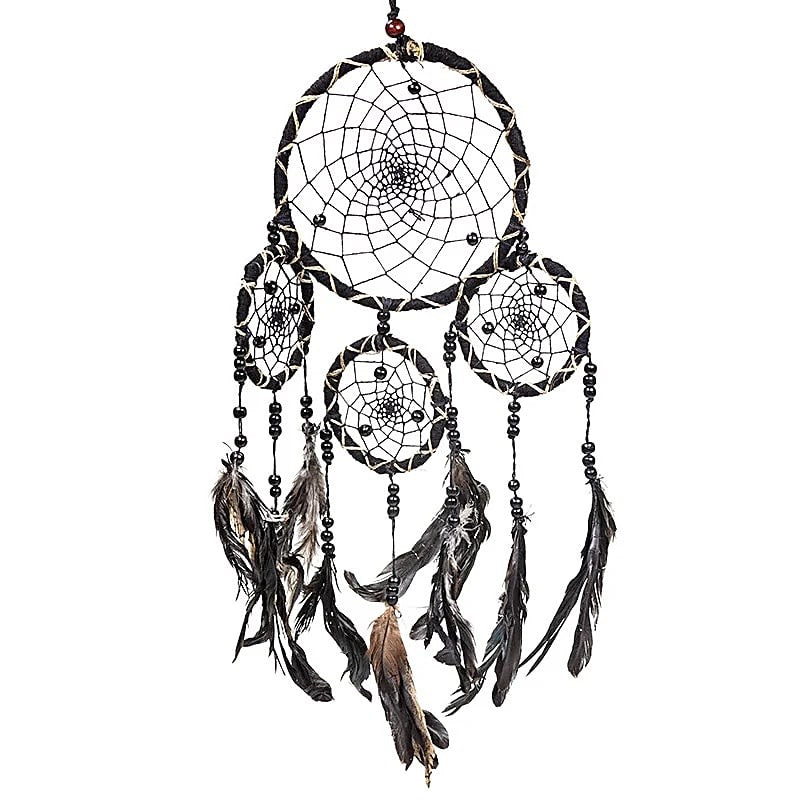 Denna eleganta drömfångare i svart, tillverkad av mjuk ull, kombinerar traditionell symbolik med modern design. Med sin storlek på 40 x 15 cm och en vikt på 268 gram blir den en tydlig och vacker dekoration i hemmet – perfekt vid sängen, i vardagsrummet eller som en dekorativ detalj i en lugn hörna. De svarta nyanserna tillsammans med fjädrarna skapar en mystisk och harmonisk atmosfär som passar den som uppskattar ett stilrent och unikt uttryck.