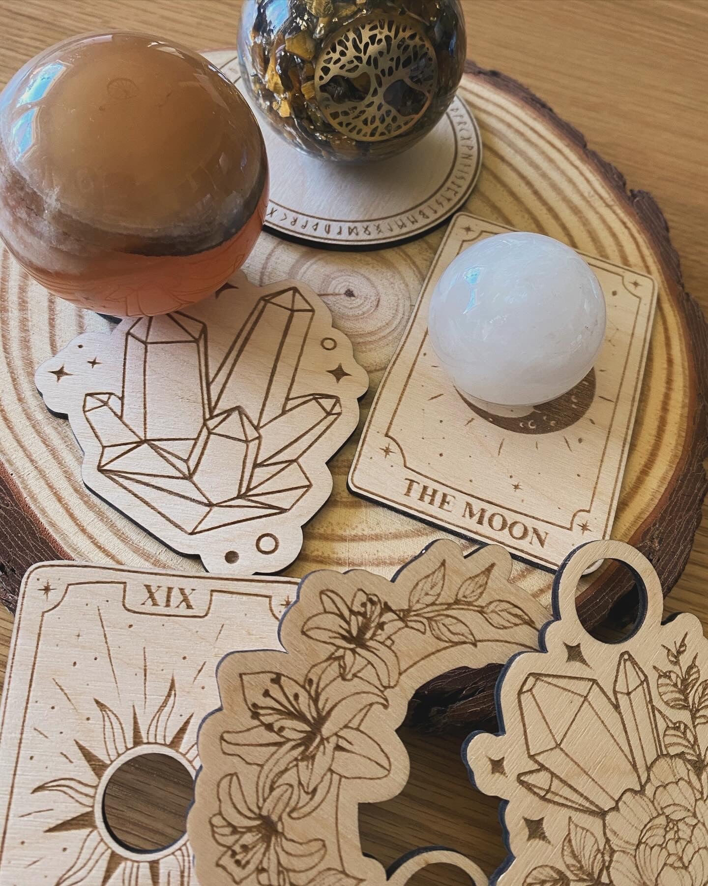 De symboliska och helande egenskaper som ibland förknippas med våra produkter – såsom ädelstenar, kristaller, mineraler, träslag, symboler, former och andra element – har sitt ursprung i: