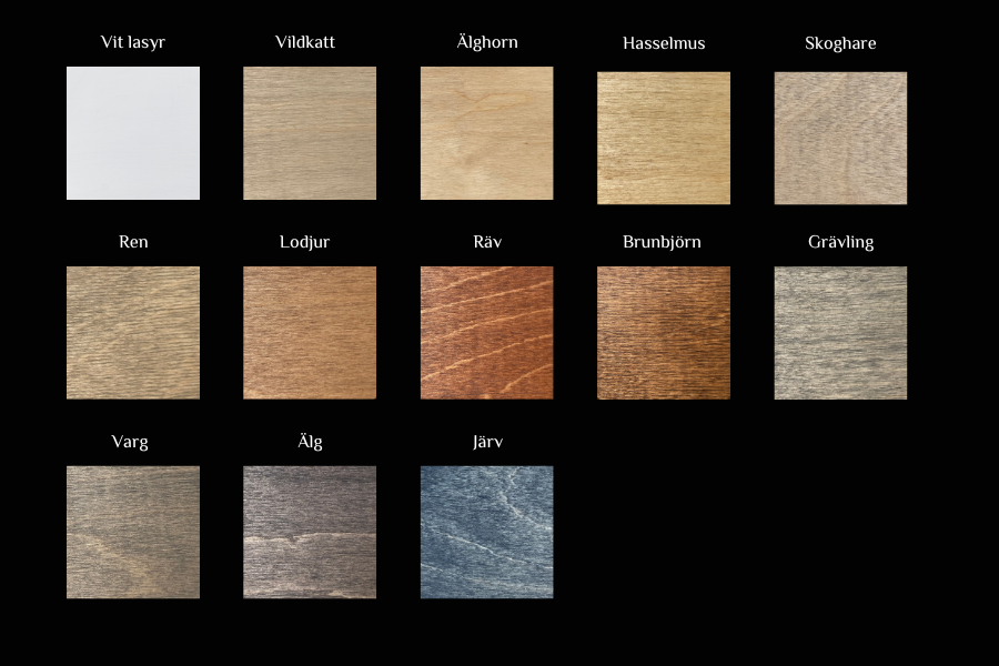 Förutom naturliga träoljor erbjuder vi även täckande lacker i olika färger. De ger våra produkter en intensiv och jämn färg samtidigt som de skyddar och gör dem hållbara över tid.