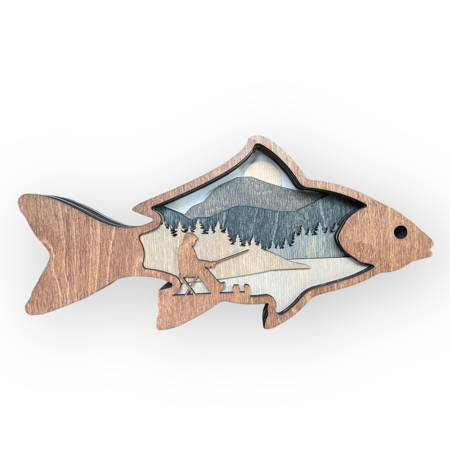 Dyk ner i lugnet av fisket med vår unika väggkonst "Relaxed Fishing". Denna konst består av 9 träskikt, som konstfullt är utformade för att fånga lugnet och harmonin vid fisket. Varje skikt fångar en annan aspekt av denna populära hobby, från den stilla vattenytan till det mjuka gungandet av fiskespöt.