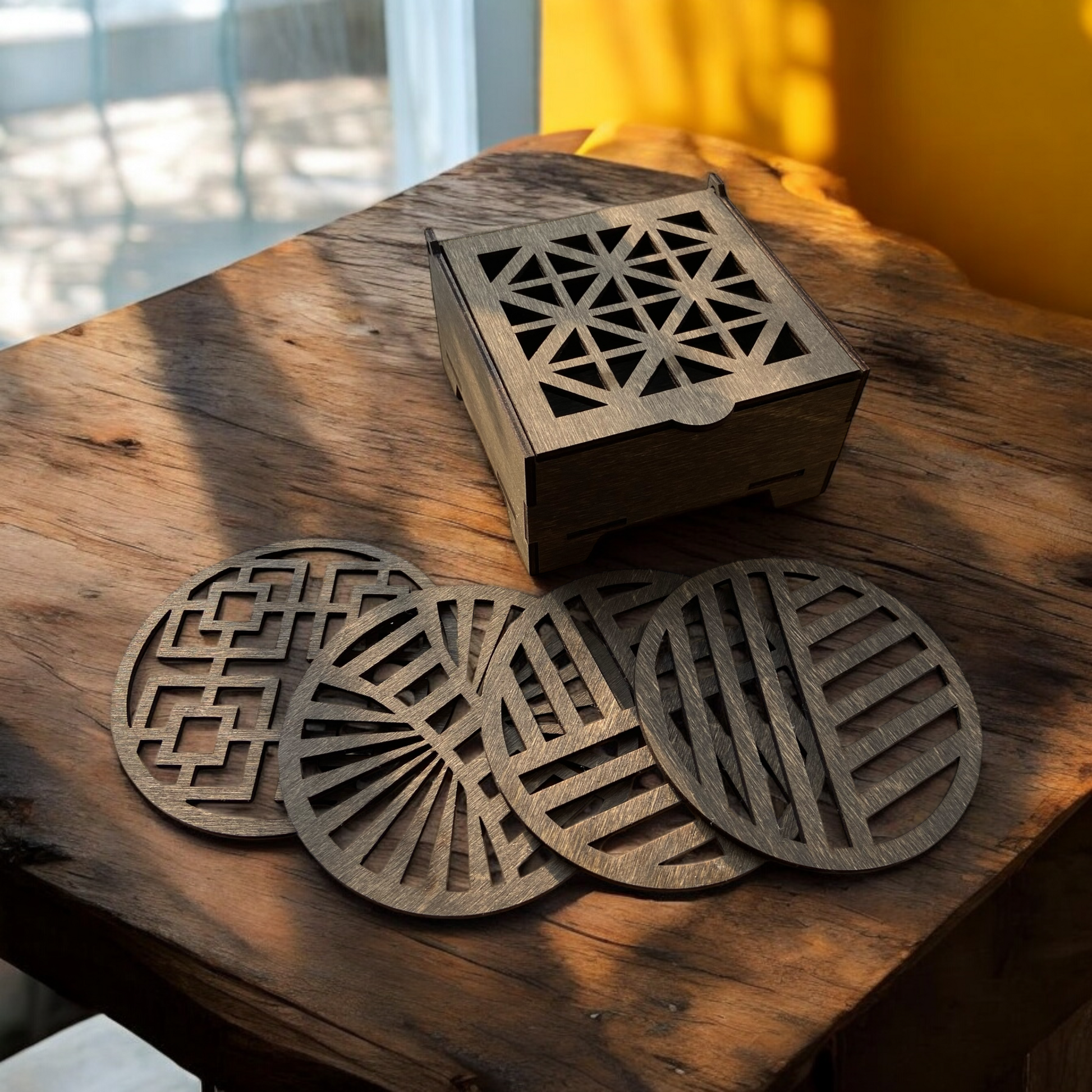 Våra högkvalitativa underlägg är inte bara designade för att skydda dina bord från irriterande kaffefläckar, utan också för att ge ditt hem en stilfull touch. Varje underlägg är noggrant utvalt och behandlat med högkvalitig olja för att säkerställa långvarig skönhet.