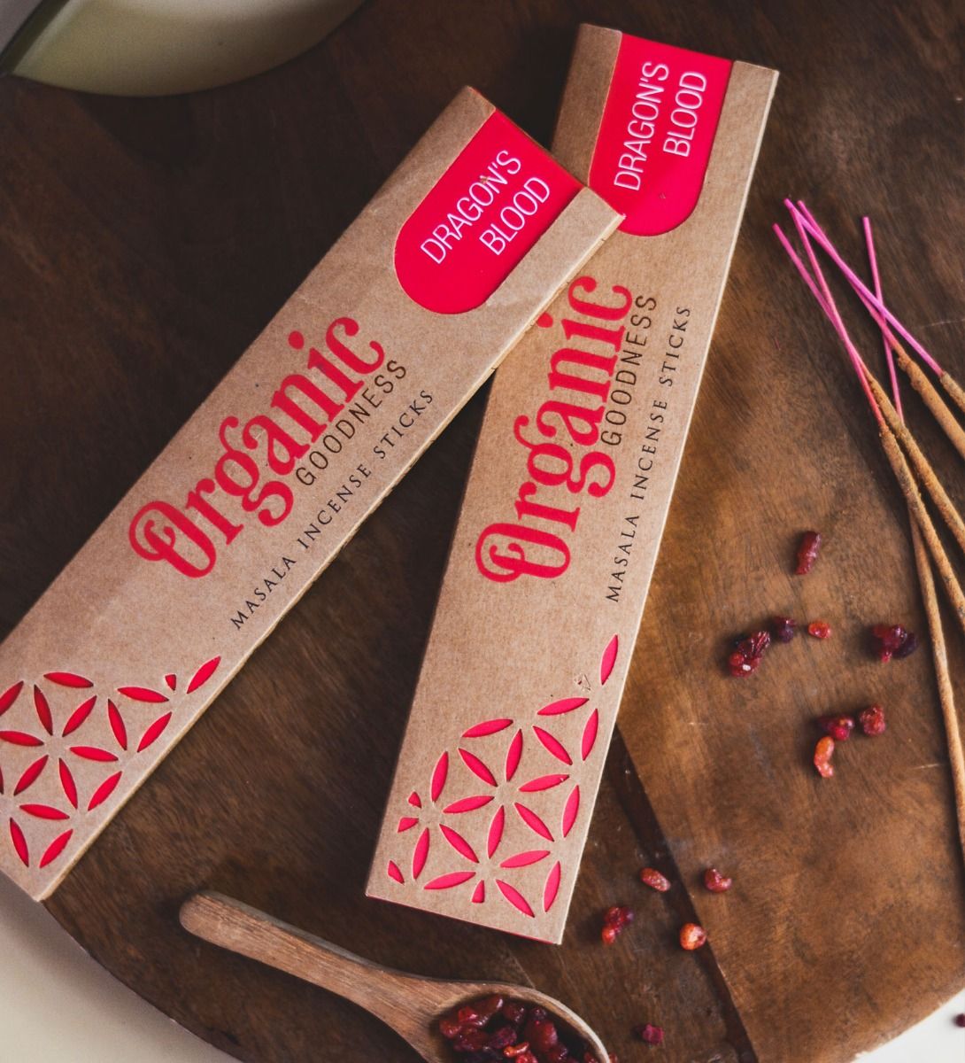 - Dragon’s Blood – en kraftfull, hartsig naturlig rökelse med jordnära och kryddiga toner för en intensiv doftupplevelse.