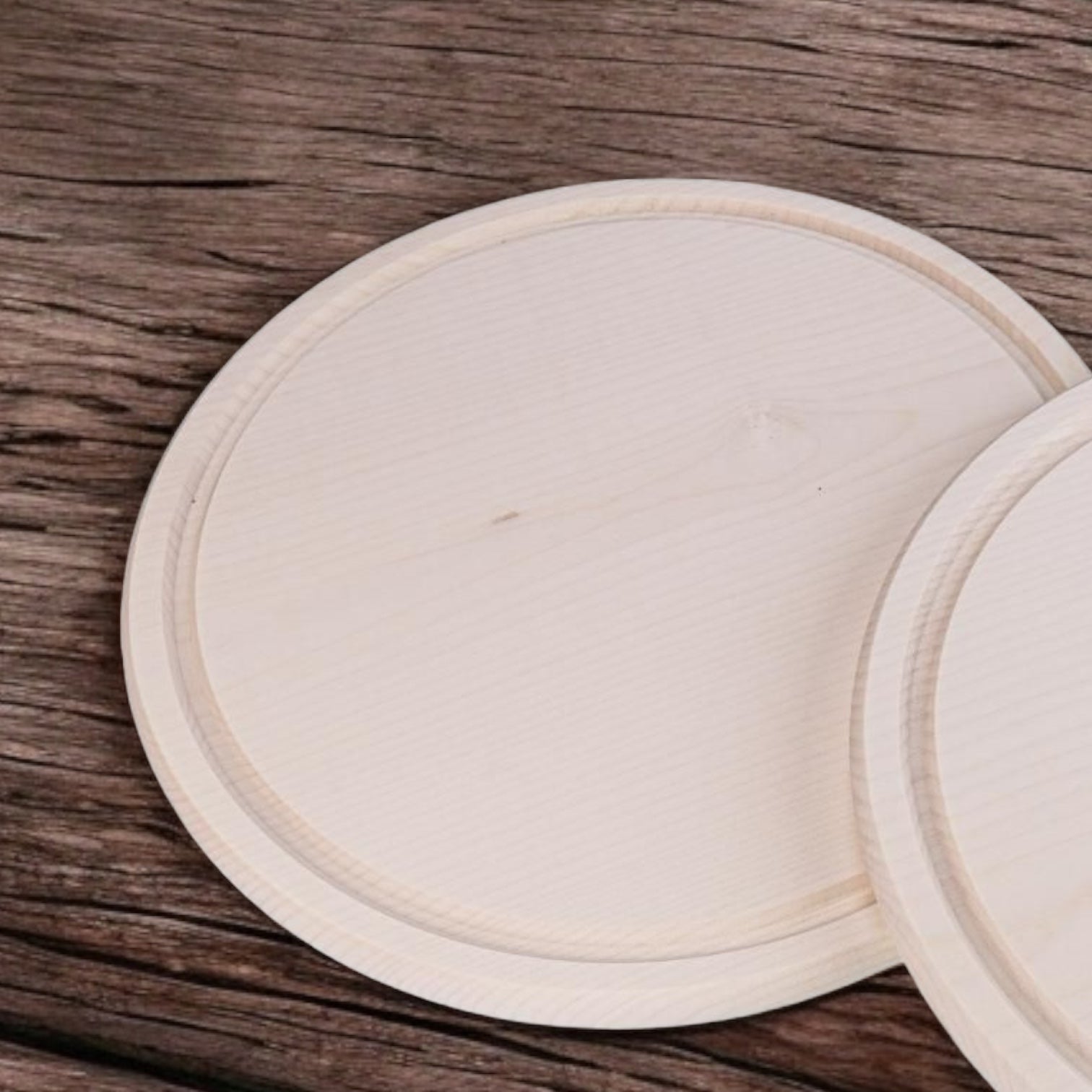 Trätallrik rund med saftspår, tillverkad av lönn 🍖🌿