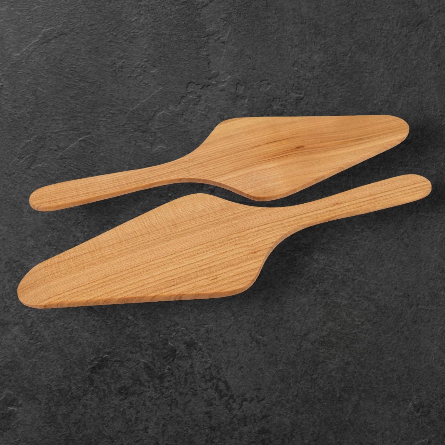 Körsbärsträet har naturligt vacker ådring och textur som ger spaden en unik estetik. Den platta ytan på spaden är idealisk för att servera mat, särskilt tårtor och kakor. Handtaget på spaden är ergonomiskt utformat för att säkerställa bekvämt och säkert användande.