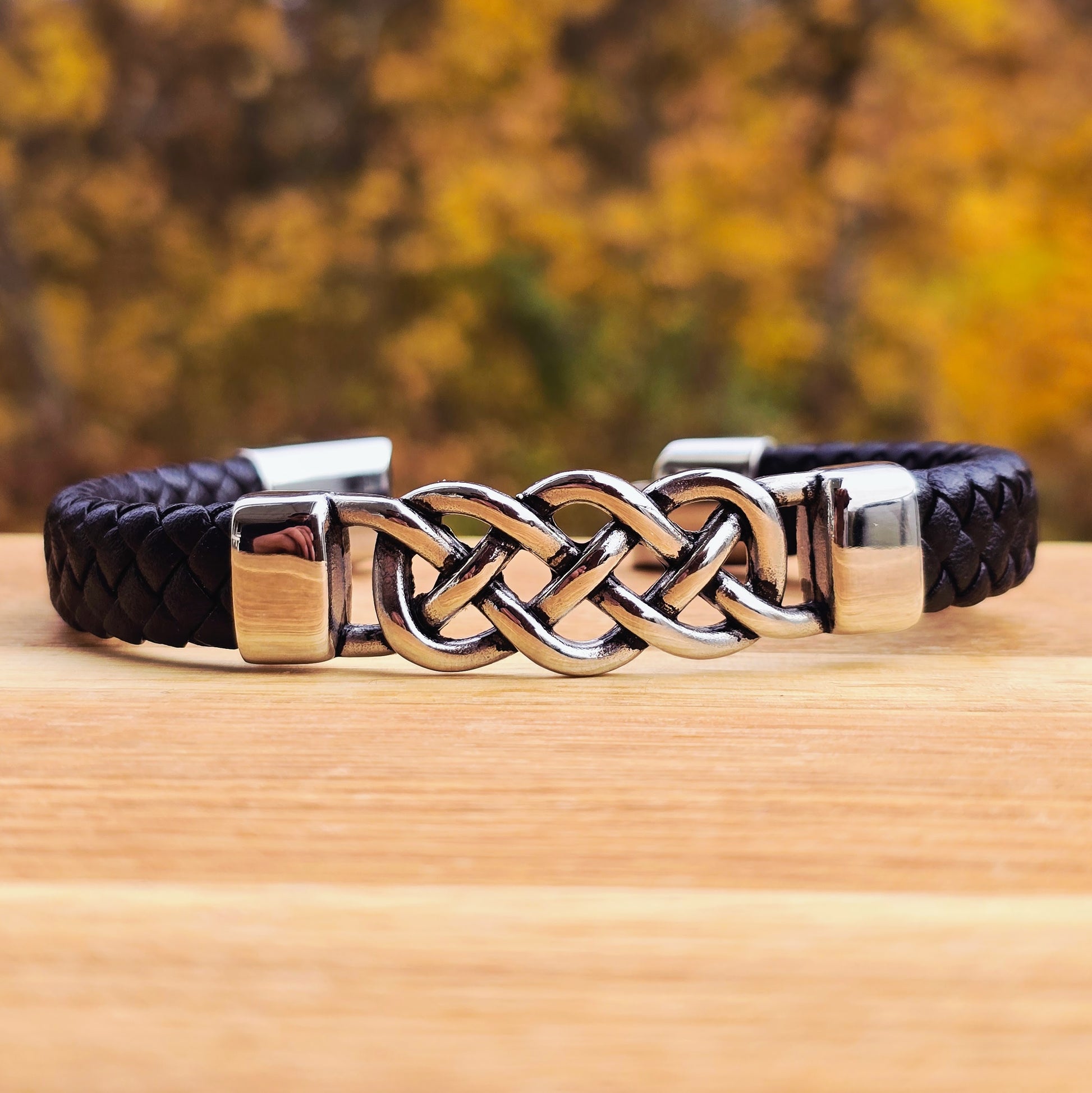 The “Massive Knot” leather bracelet carries the timeless Celtic knot as a symbol of eternity, connection, and strength.
