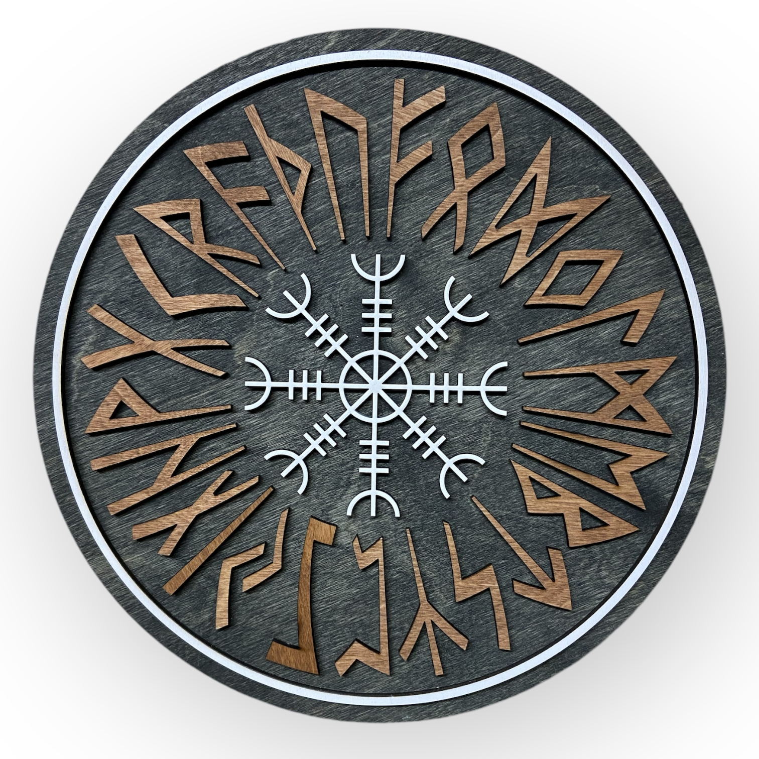 Väggdekoration – Vikingasköld med Runor & Vikingkompass 🛡️✨ - Typ 1, Vers. 3