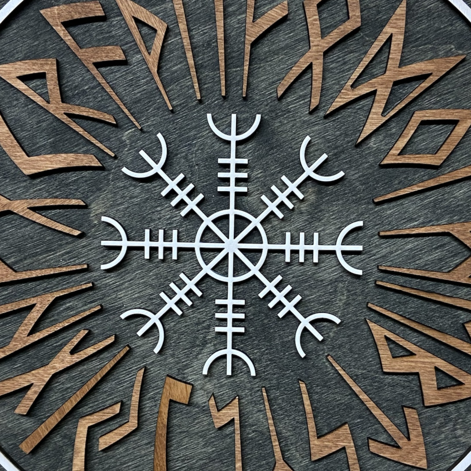 ⚡ Symbolisk betydelse: Runorna representerar skydd & visdom , medan Vegvísir sägs vägleda sin bärare genom livets stormar.