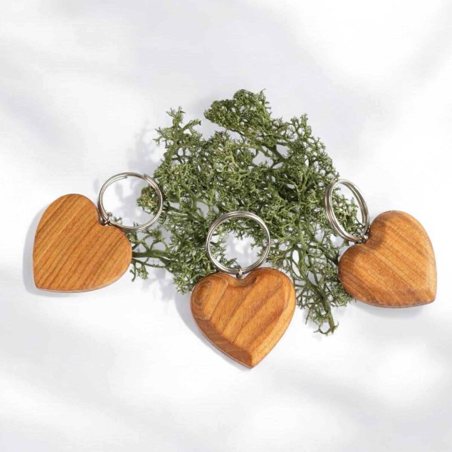 Hjärtformad nyckelring i trä | Oljade körsbär
