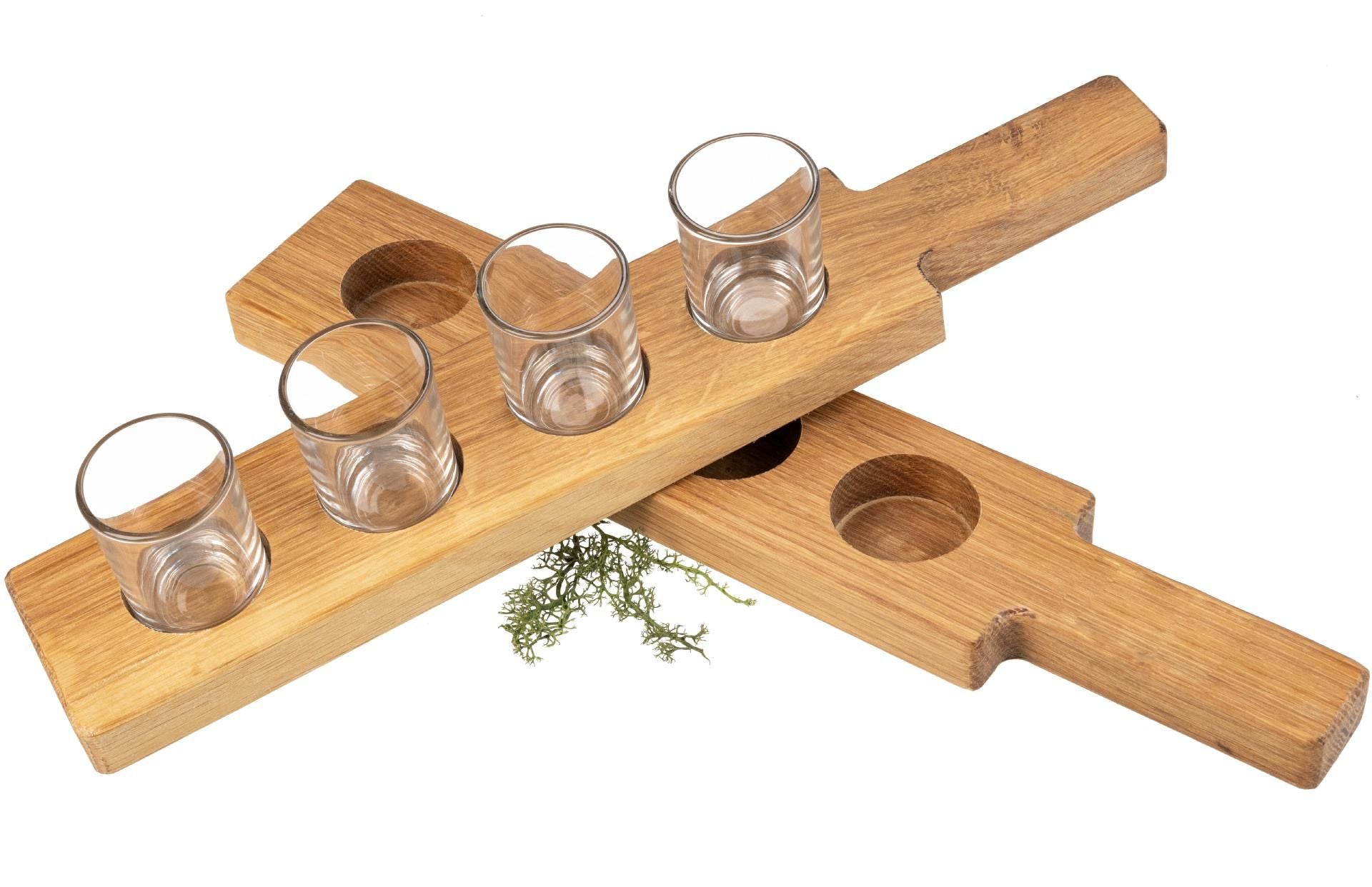 Snapslatte av Oljad Ek – Perfekt för Servering av Snapsglas – För 4, 6 eller 8 Glas