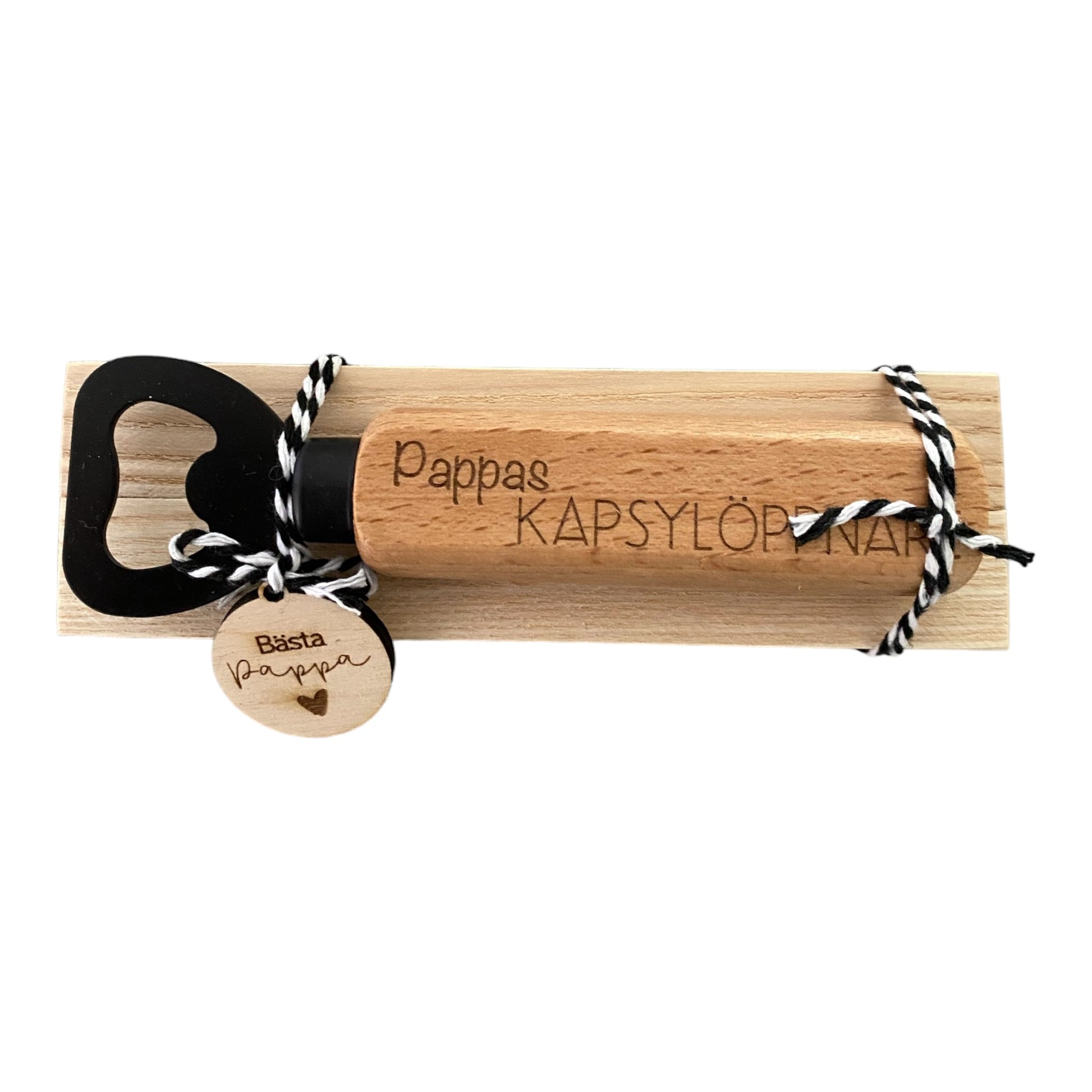 Personligt graverad flasköppnare - FSC®-lackerad bok