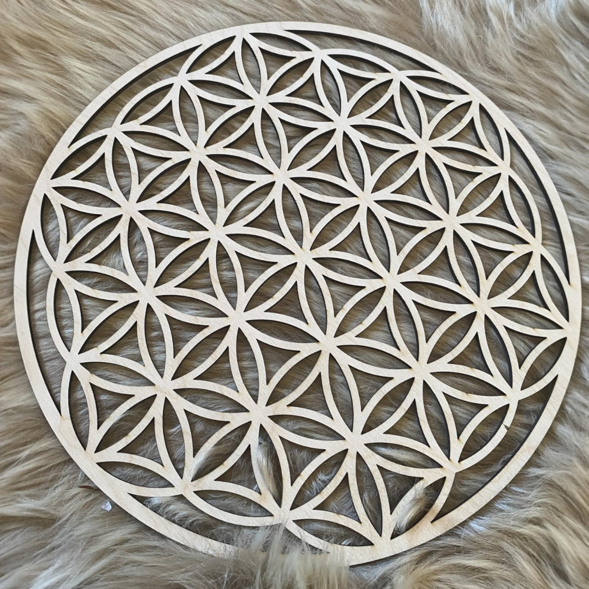 Tillverkad av naturligt trä och skuren med precision, bär denna Livets Blomma med sig en känsla av lugn och inspiration. Häng den på väggen, lägg den på ditt altare eller använd den för meditation och mindfulness.