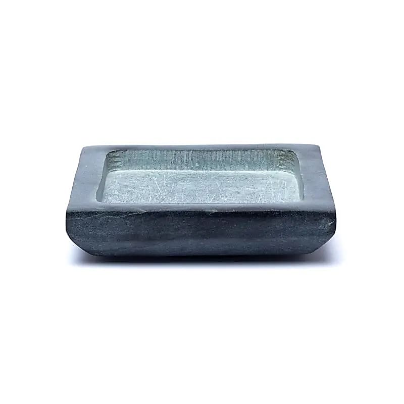 Denna mångsidiga och robusta kvadratiska specksten ger en stabil bas för ljus och skapar en naturlig, elegant atmosfär. Den dämpade färgen och den unika strukturen hos speckstenen gör underlägget även idealiskt som dekorativt fat eller smyckesbricka.