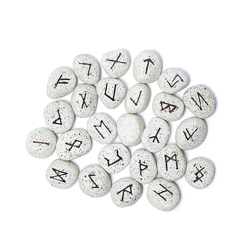 Detta Runor Orakelset består av 25 keramiska runstenar , vars symboler är inspirerade av Futhark -alfabetet, det gamla tyska skriftsystemet. Varje keramisk sten mäter 25 mm och har en vikt på 140 g , vilket gör dem lämpliga för både spådom och andlig praktik . Setet levereras i en bomullspåse , vilket gör det enkelt att förvara och transportera. 🌿💫