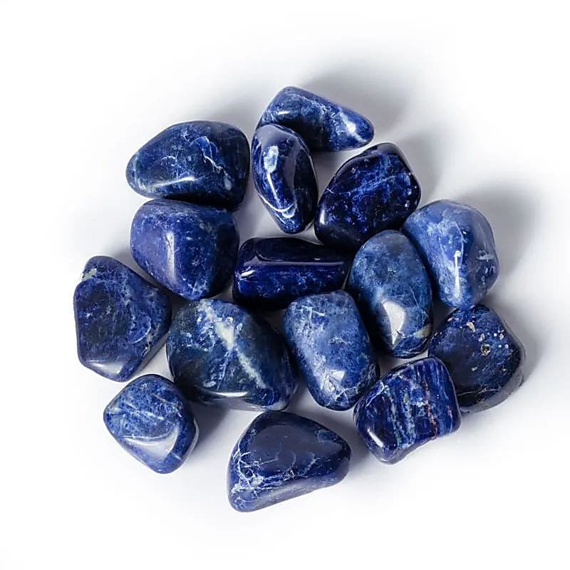 Sodalit Trumlade Stenar är en kraftfull ädelsten som står för klarhet, inre ro och ärlig kommunikation. Med sin djupblå färg och vita ådror främjar den klara tankar och hjälper dig att uttrycka din sanning. En idealisk följeslagare för andlig utveckling och stark, autentisk kommunikation! 💎
